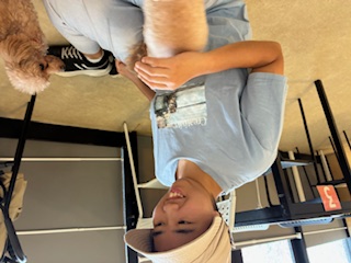 エコトピアの玄関前の飾り付け前でハイポーズ!