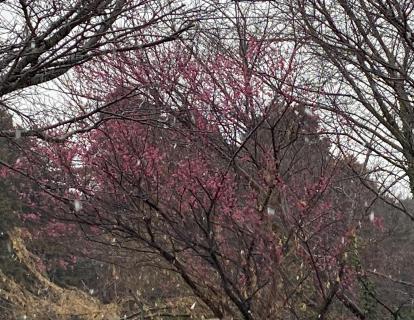 先週の今頃は・・・暖かかった・・・はず......。 週末から今日にかけては、日々寒さが骨身に染みますね。 人間にとっては堪える寒さも、季節の植物にとっては、花を付けるための貴重な時期なのでしょう! 今年も、1号館裏の梅の花が、鮮やかな濃ピンクの花を咲かせて、季節の移ろいを知らせてくれています。雪の白さも、また綺麗です。 北陸地方の皆さん1日も早い復興を目指し、 『共に心ひとつに!』