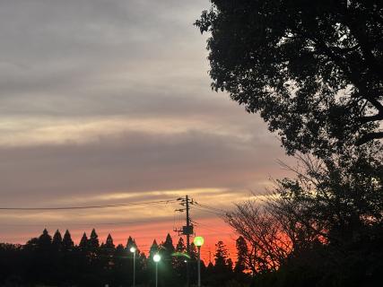 | 今朝は一段と寒さを感じる気温となりましたね。なんだか遅れて『秋』がやってきた感じがしますね。 秋の綺麗なものには、真っ赤な紅葉が代表格ですが、夕焼けもまた鮮やかなオレンジ色を見せてくれます。夕方、外に出た際に偶然見た空をパシャリ! |