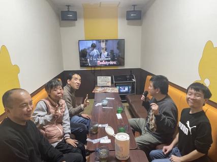 食後にはお楽しみのカラオケタイム。