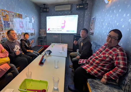 2つの部屋に分かれて、さっそくカラオケスタート。持ち歌のリクエストが次々と入りました。